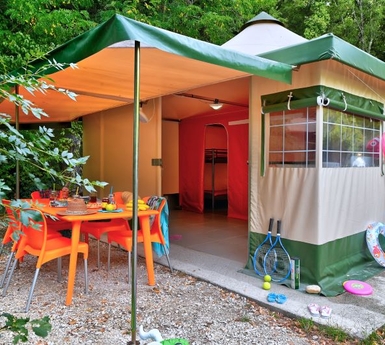 In unmittelbarer Nähe des Campingplatzes offenbart der Fluss Cèze private, speziell für Urlauber eingerichtete Strände. Diese unberührten Bereiche, die zu Fuß vom Gelände aus erreichbar sind, ermöglichen es, die natürliche Umgebung in vollen Zügen zu genießen: Schwimmen im kristallklaren Wasser, ein Nickerchen im Schatten der Bäume oder ein Picknick am Wasser. Es ist der ideale Ort, um sich mit der Natur zu verbinden und dem Trubel zu entfliehen. Das charmante Dorf Barjac, nur wenige Kilometer entfernt, rundet diese verzauberte Auszeit ab. Mit seinen gepflasterten Straßen, dem Renaissance-Schloss und dem lebhaften provenzalischen Markt lädt es zum Entdecken und Schlendern ein. Barjac ist auch ein idealer Ausgangspunkt, um das Gard und seine kulturellen Schätze zu erkunden, wie das Pont du Gard, die Höhlen von la Cocalière oder die umliegenden Weinberge.