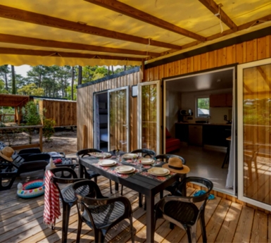 Nur wenige Minuten vom Campingplatz entfernt bietet Ihnen das Naturschutzgebiet Courant d’Huchet eine bezaubernde Umgebung zwischen Sümpfen, Dünen und Wäldern, ideal für eine ruhige Bootsfahrt oder einen Spaziergang. Der nahegelegene Lac de Léon begeistert Jung und Alt mit seinem ruhigen Wasser, das sich perfekt zum Schwimmen, Paddeln oder für ein Picknick am Wasser eignet. An der Küste erwarten Sie Hossegor und Capbreton mit ihren berühmten Surfspots, Fischrestaurants und charmanten Fischerhäfen. Um in die lokale Atmosphäre einzutauchen, sind die Dörfer Moliets, Vieux-Boucau oder Lit-et-Mixe mit ihren farbenfrohen Märkten und der typischen Landes-Architektur einen Umweg wert. Und für einen Tagesausflug können Sie die majestätische Dune du Pilat besteigen: Atemberaubende Ausblicke auf den Atlantik und die Wälder, soweit das Auge reicht, sind garantiert. Zwischen unberührter Natur, Landes-Traditionen und Momenten der Entspannung halten die Landes unvergessliche Entdeckungen für Sie bereit.